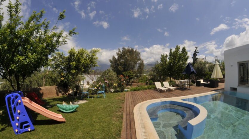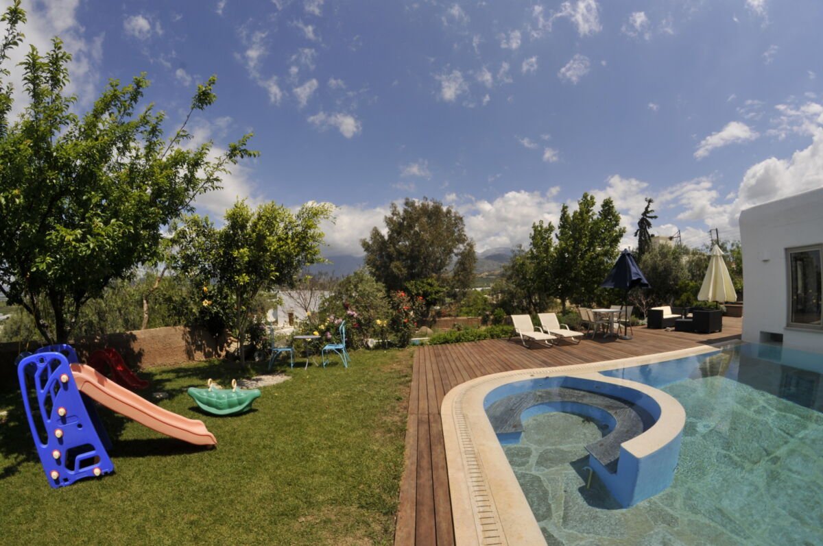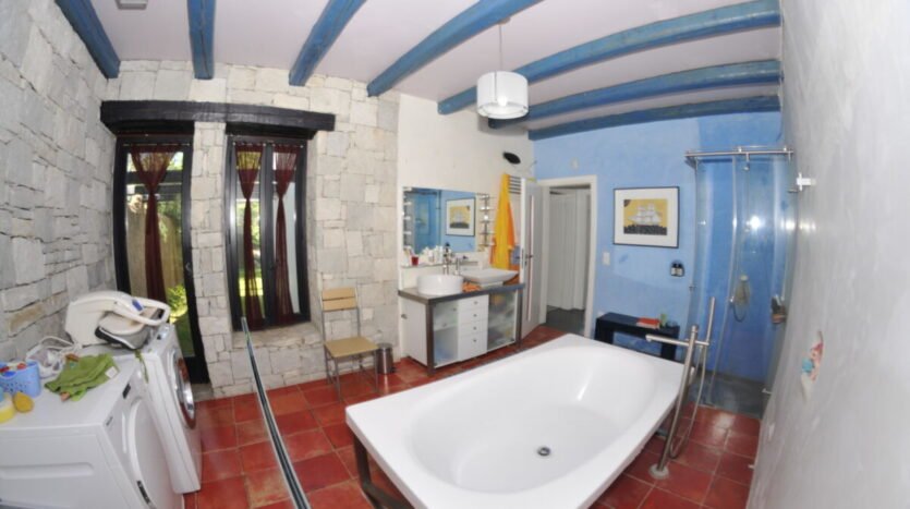 with a swimming pool 50 m² heated by the sun, underfloor heating with a heat pump and a 2000lt water tank for extra water.