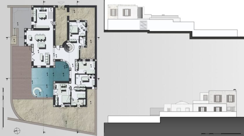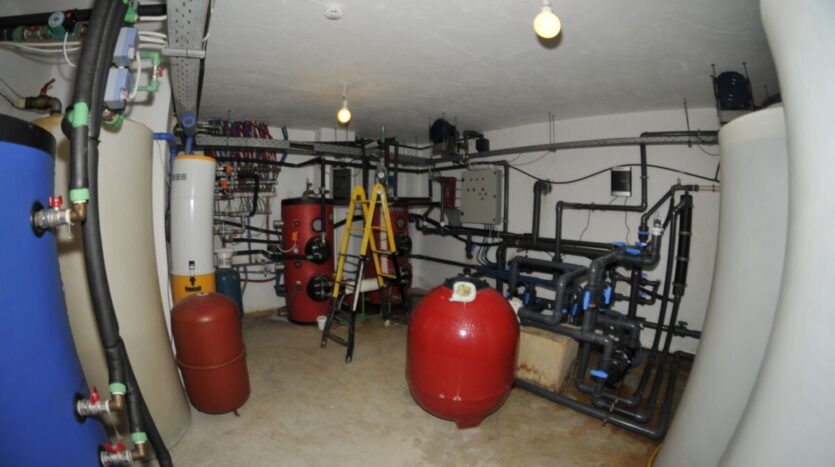with high safety standards, all materials were brought from Germany, furniture designed specifically for premises of the house, underfloor heating and cooling with an extensive solar system, heat pump, and oil boiler.