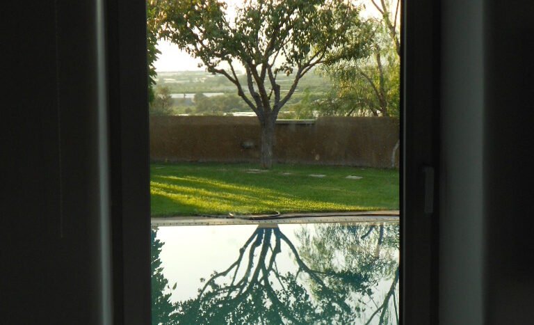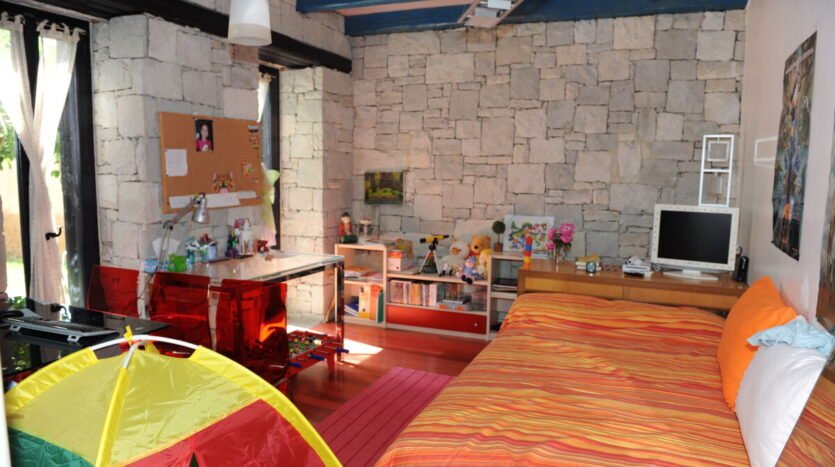 it has exit to inner yard and direct access to the pool with a natural lawn around.