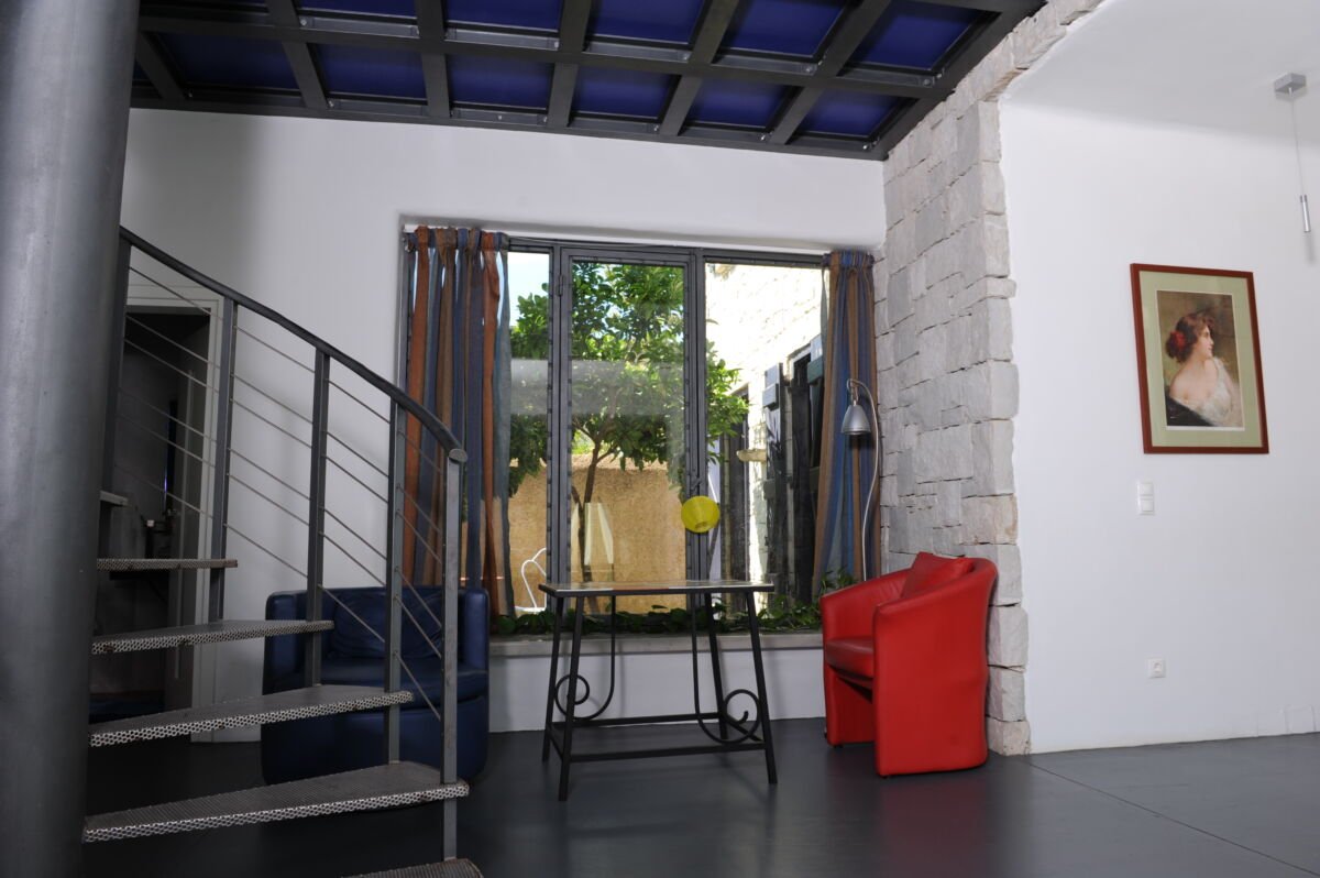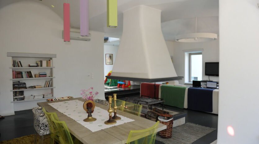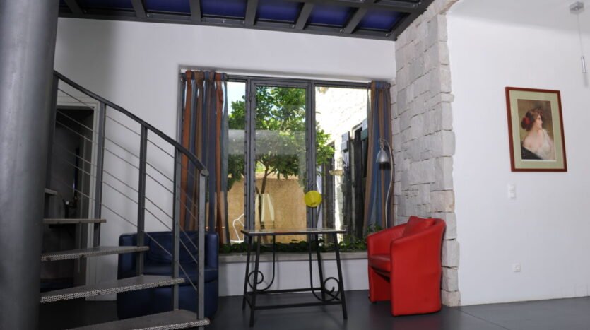 Stone houses inside have industrial floors, the materials used for the interior design are wood, reinforced concrete, stone, metal and glass: