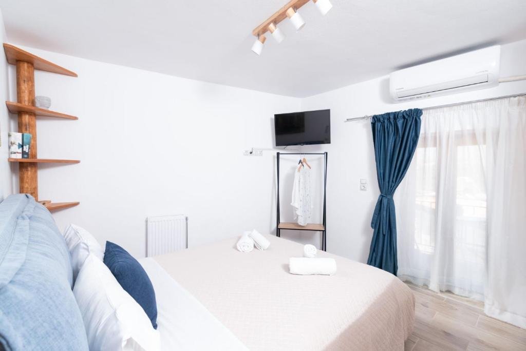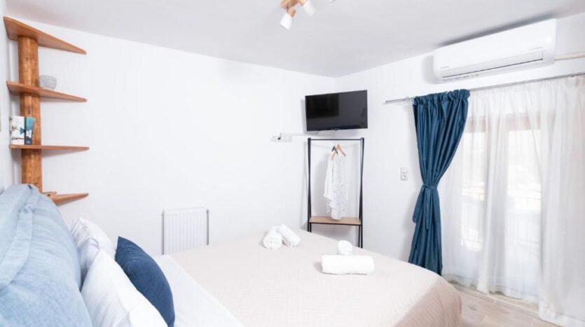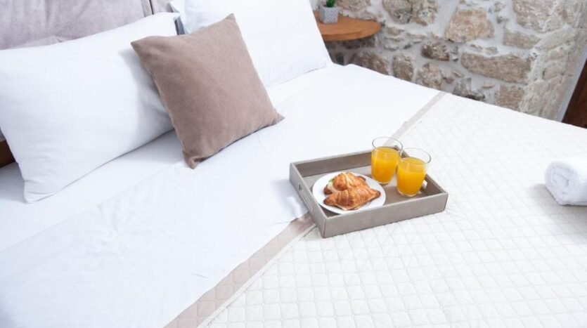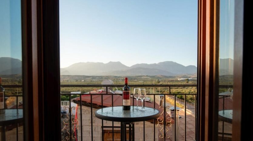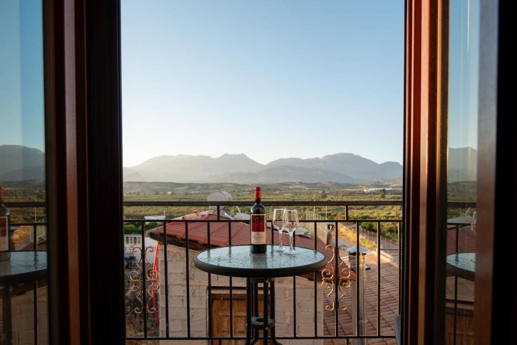 The two bedrooms have balconies with unique views of the plain of Messara, Phaistos, and Psiloritis, Northeast to the mountains of Lassithi and South of Asterousia.