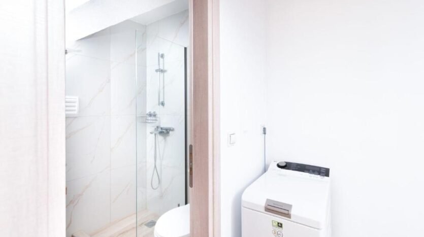 It also has air conditioning in the rooms, a TV, a washing machine and a wifi network.